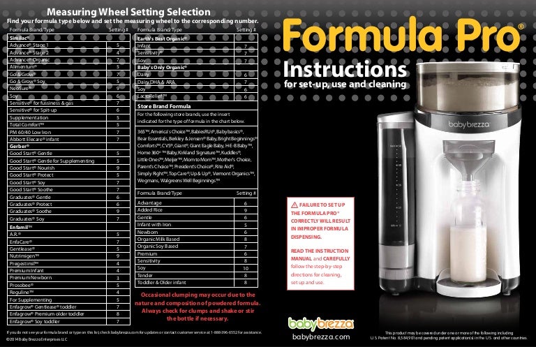 Products Formula Pro Advanced Baby Formula Dispenser 49999. Thats why we at Baby Brezza have created baby. I have lost my sheet which says what setting the measuring wheel is for each Australian formula type.